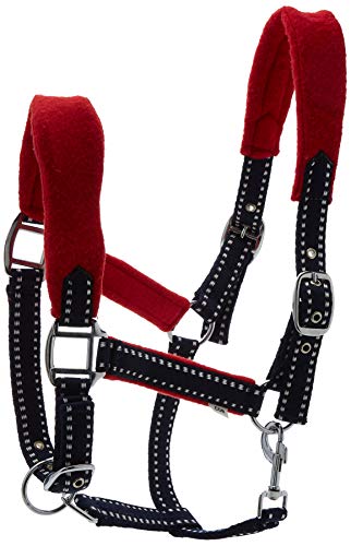 Cwell Equine FLEECE padded headcollars halter Red/Navy TWO TONE Full/Cob/Pony