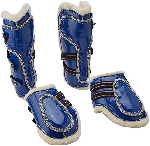 Cwell Equine New Bling Tendon & Fetlock Boots Sparkly Diamante on Patent Leather BLUE F/C/P