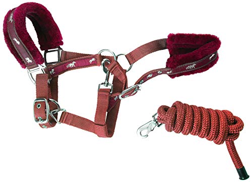 Cwell Equine NEW Horse print fur padded headcollars halter + matching lead BURGUNDY