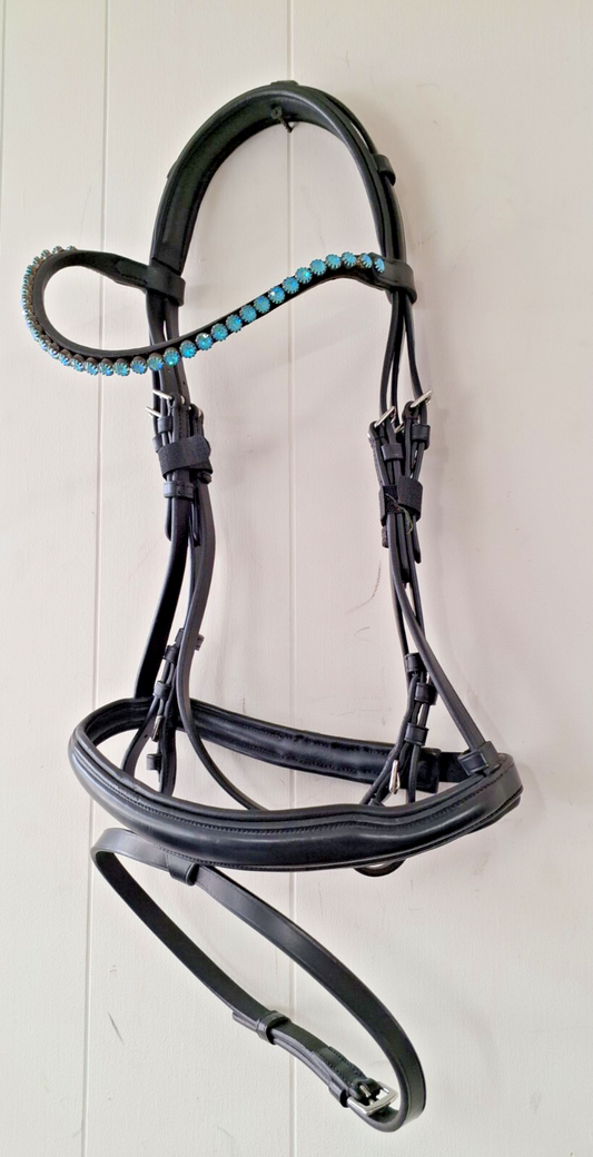 NEW English Leather Turquoise CRYSTAL BRIDLE SNAFFLE BRIDLE full Black (683-19)
