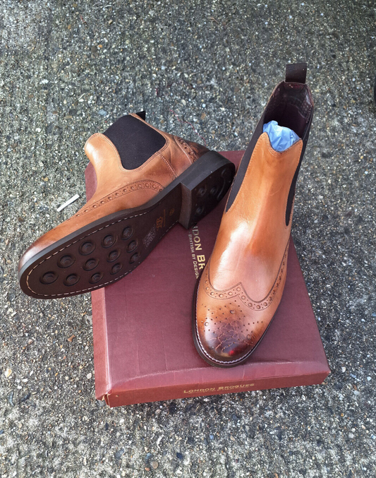 New London Brogue Henry Chelsea Boot TAN leather mens Boots On sale