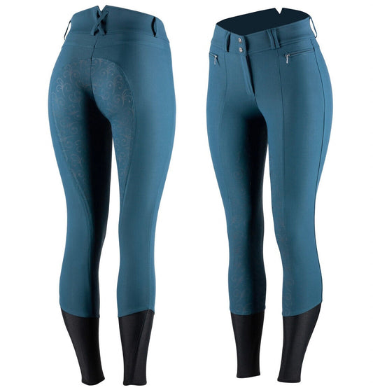 Horze Angelina Women's Silicone Full Seat Breeches, Blue UK14 EU42 (36617) (S9)
