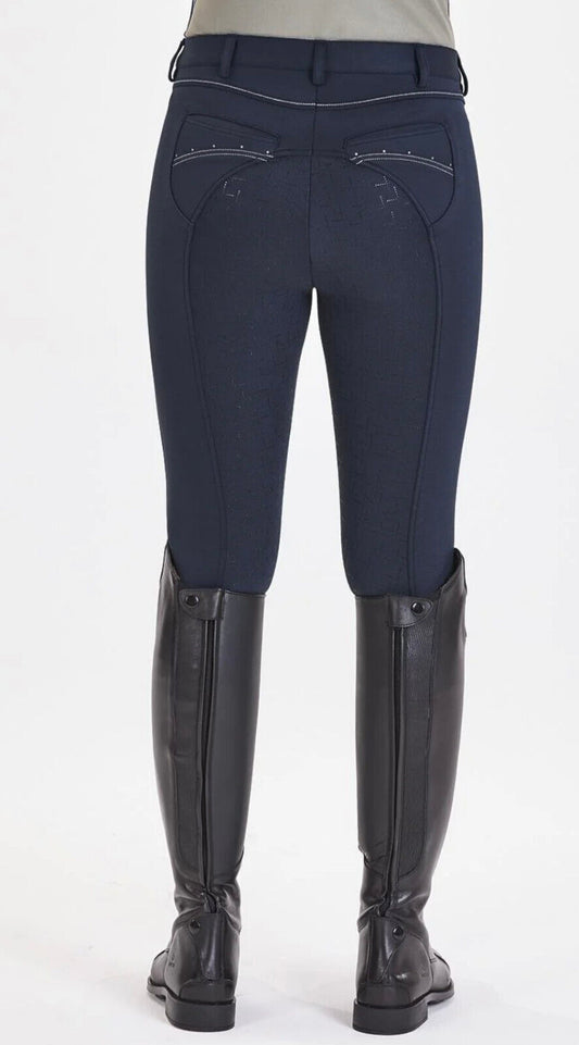 EQUESTRO Zenda Full Grip Ladies Riding Breeches Navy, EU38 UK10 (018) (S11)
