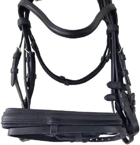 NEW Cwell Equine PLAIN FLAT HUNT Cavesson Bridle With LEATHER Reins - BLACK