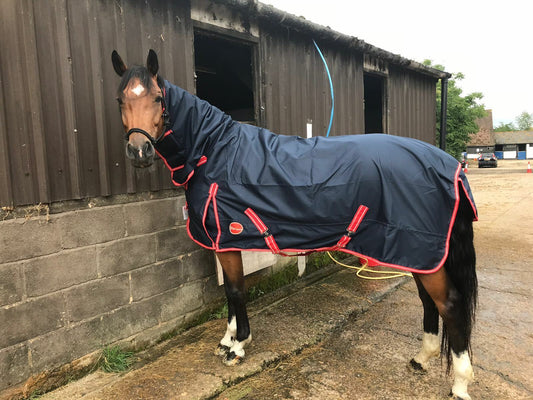 Cwell Equine LightWeight NAVY/RED turnout rug rain sheet no fill 600 Denier Waterproof