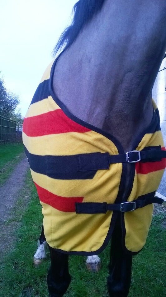 Cwell Equine FLEECE HORSE RUG cooler stable travel show NEWMARKET STRIPE