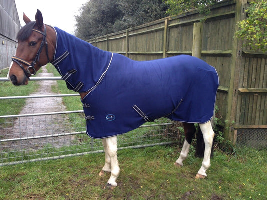NEW NAVY HORSE COB PONY SHOW TRAVEL FLEECE RUG 3'6-7'0" stable cooler choice of Sizes