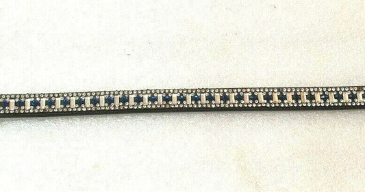 Designer Crystal Reverse 5Row Blue Zircon Browband,Polo Leather Black Full (825)