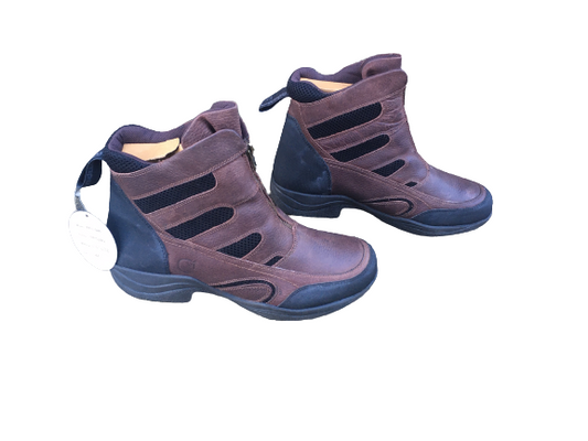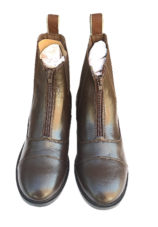 Cwell Equine Quality Leather Front Zip Jodhpur Paddock Boots Black/Brown
