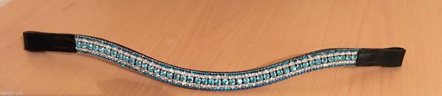 BLING!*Dressage*Mega-Sparkly Browband*5Row Crystals*Turquoise/CLEAR BLACK cob