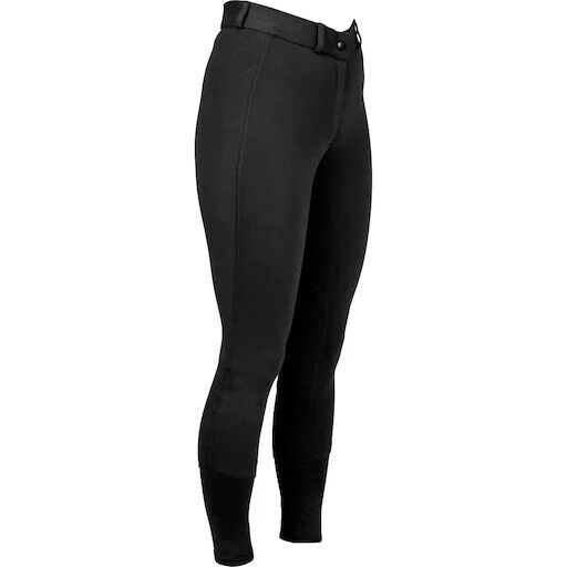 Jersey riding breeches reinforced at knees. Belt loops on waistband. Elastic at ankles. Inner leg length approx. 67 cm in women's sizes. - Wash 40°.