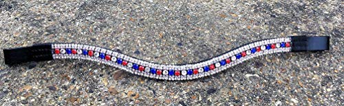 Cwell Equine Designer crystal browband 5 rows of crystals and pearls . 6 mm red white blue and 3 mm pearl and clear crystals . hand made and hand stitched .