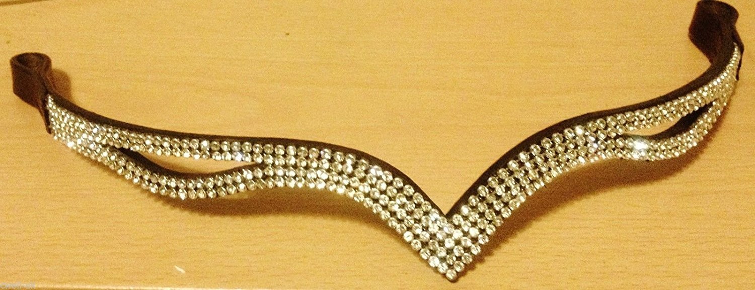 Cwell Equine Bling Ve Eye Shaped Clear Crystal Browband Choice of Sizes BROWN/BLACK * Great gift SALE