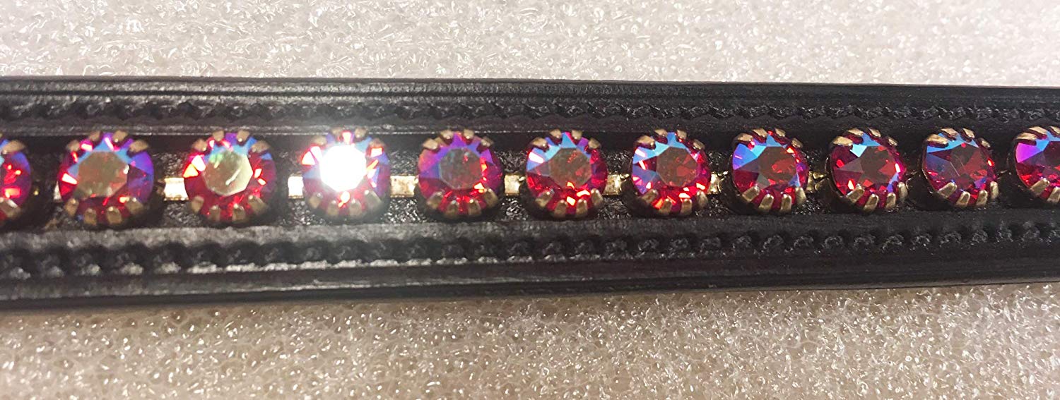 Crystal Browband 5/8" with Siam effect rystals English Leather Full 16" Black