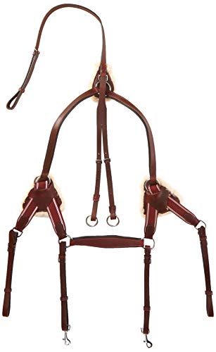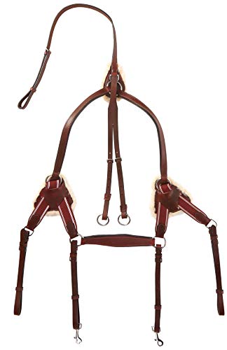 INTRODUCING BRAND NEW HIGH QUALITY LEATHER 5 POINT BREASTPLATE + MARTINGALE COMFORT PADDING AND HAND CRAFT BUY EXPERT LEATHER TECHNICIANS , COMES COMPLETE WITH DETACHABLE RUNNING MARTINGALE , ADJUSTABLE STRAPS AND SOLID STAINLESS STEEL NICKEL FITTING . COLOUR - Cherry Brown SIZE - FULL , Cob, pony , x full Height hh Size Required 13.2-15hh Pony/Cob 15.1-16.2hh Cob/Full 16.3hh+ Full/Extra Full