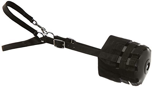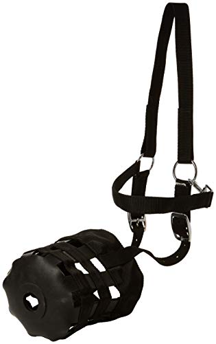 Nylon Grazing Muzzle Nylon Grazing Muzzle is adjustable is an all-in-one combination for controlling over eating by limiting food intake through the small opening at the bottom of the muzzle. Designed with large holes in front to allow for easy breathing. This grazing muzzle includes an adjustable nylon halter with a throat snap and ring for easy leading.