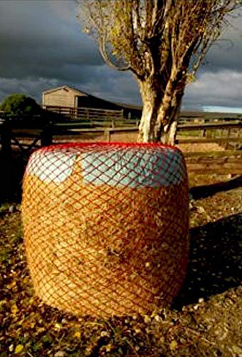 NEW COMMERCIAL SIZE Slow Feed Round Bale Haylage Commercial Size Fits All around 6ft Bales Key Features: Economical Increases feeding time Reduces waste No metal parts to rust small holes 2 inches only Easy to Use: Shaped to fit biscuits for easy loading Rope drawstrings are easier to find and easier to untie Generous size allows large amounts of hay to be fed
