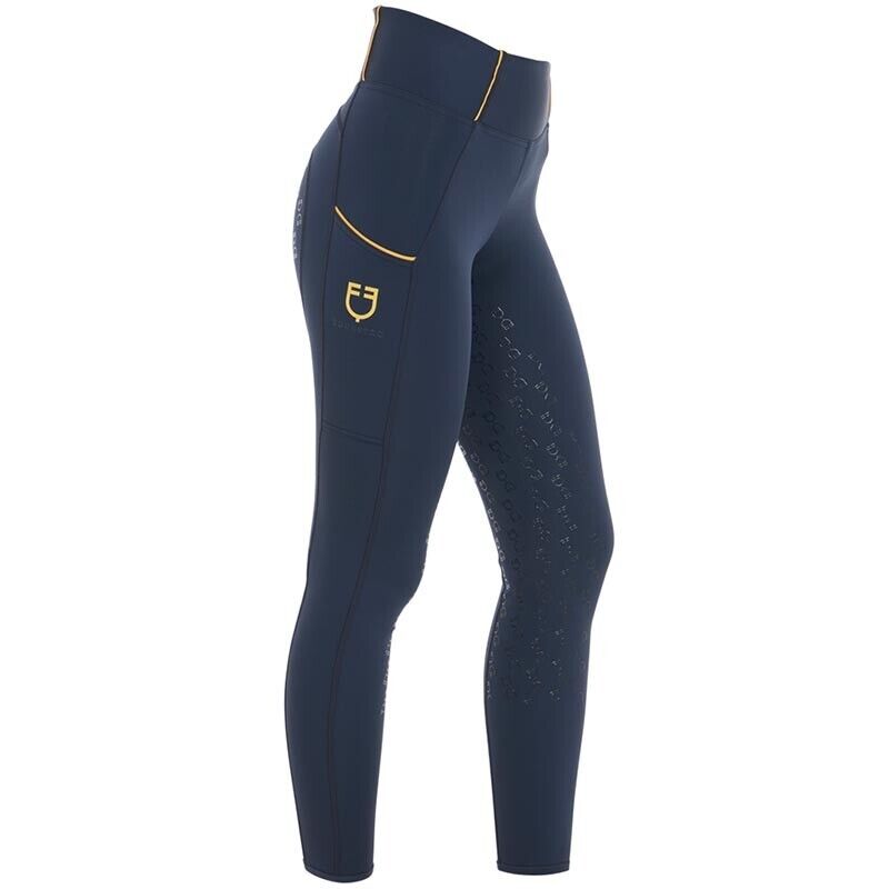 Equestro Ladies Junior Full Grip Riding Tights ,Navy/Yellow , SIZE Large (3957)
