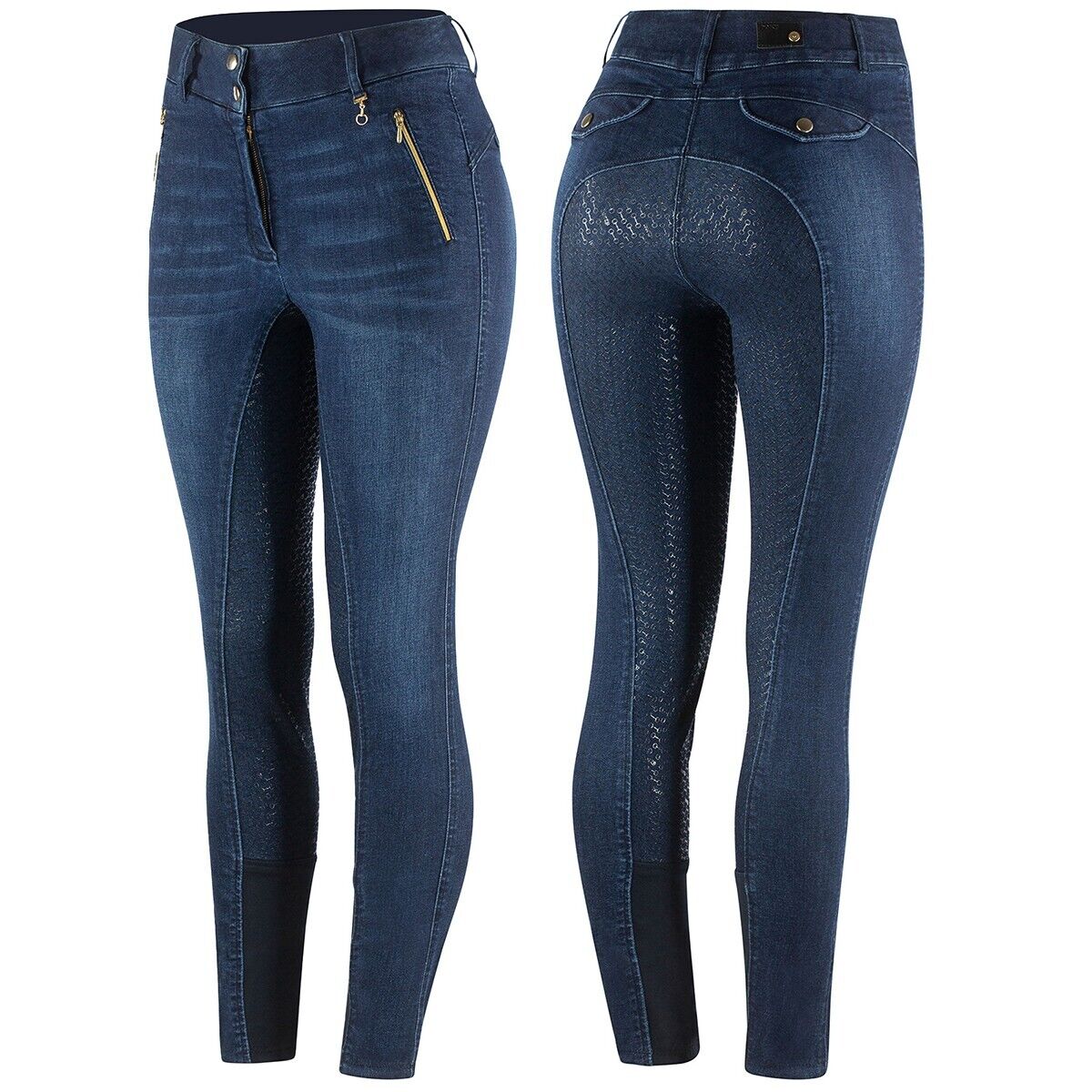 Horze Nicole Full Grip Ladies Denim Breeches -Dark Blue,UK 8 EU 34 USA 22(36087)
