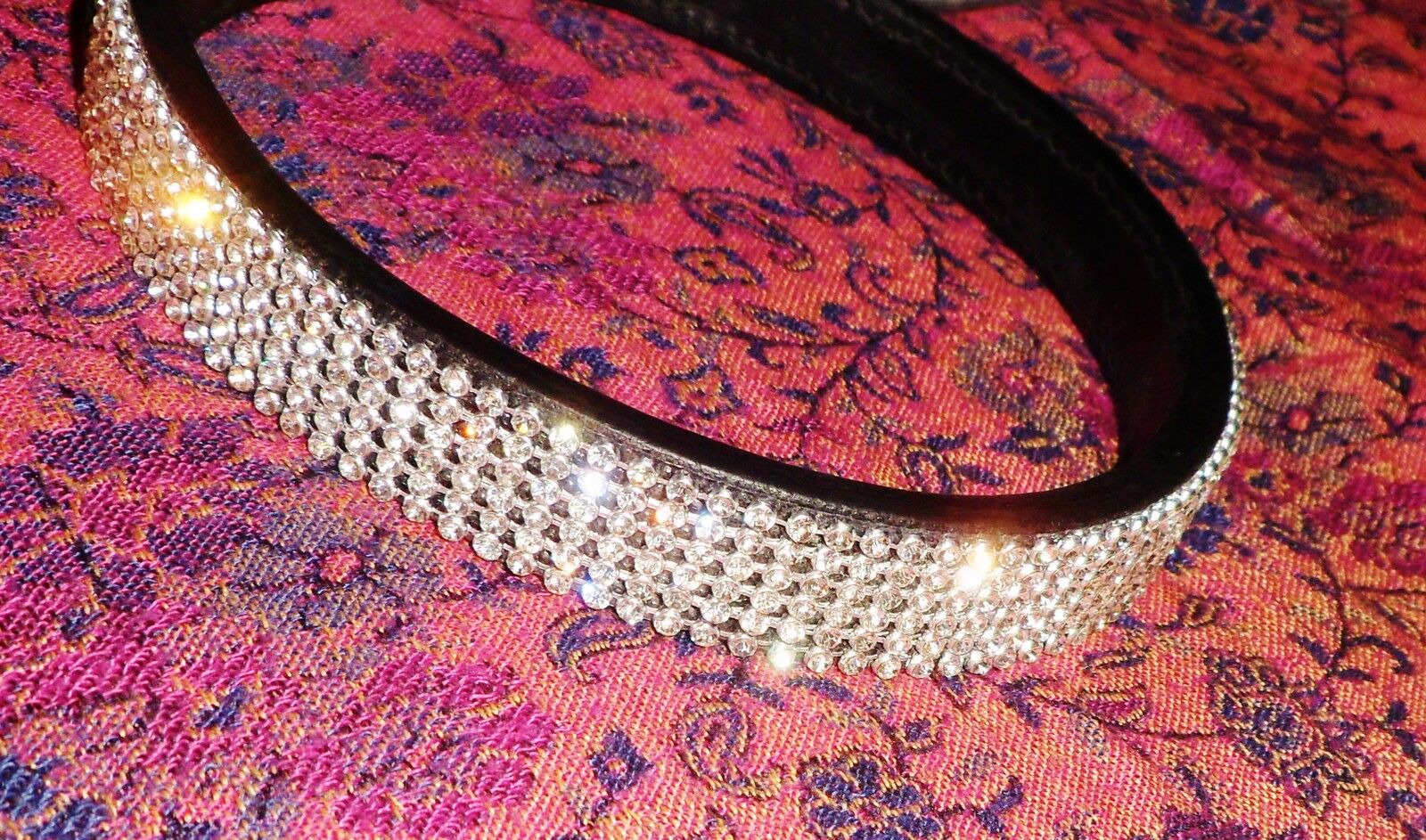 with sparkling crystals ,Padded lining, soft and supple real quality leather show stopper!