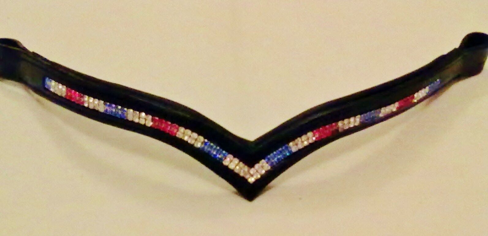 New Designer (V) Shaped 2 Row *Team GB* Crystal Browband PONY Size 14" (Black)