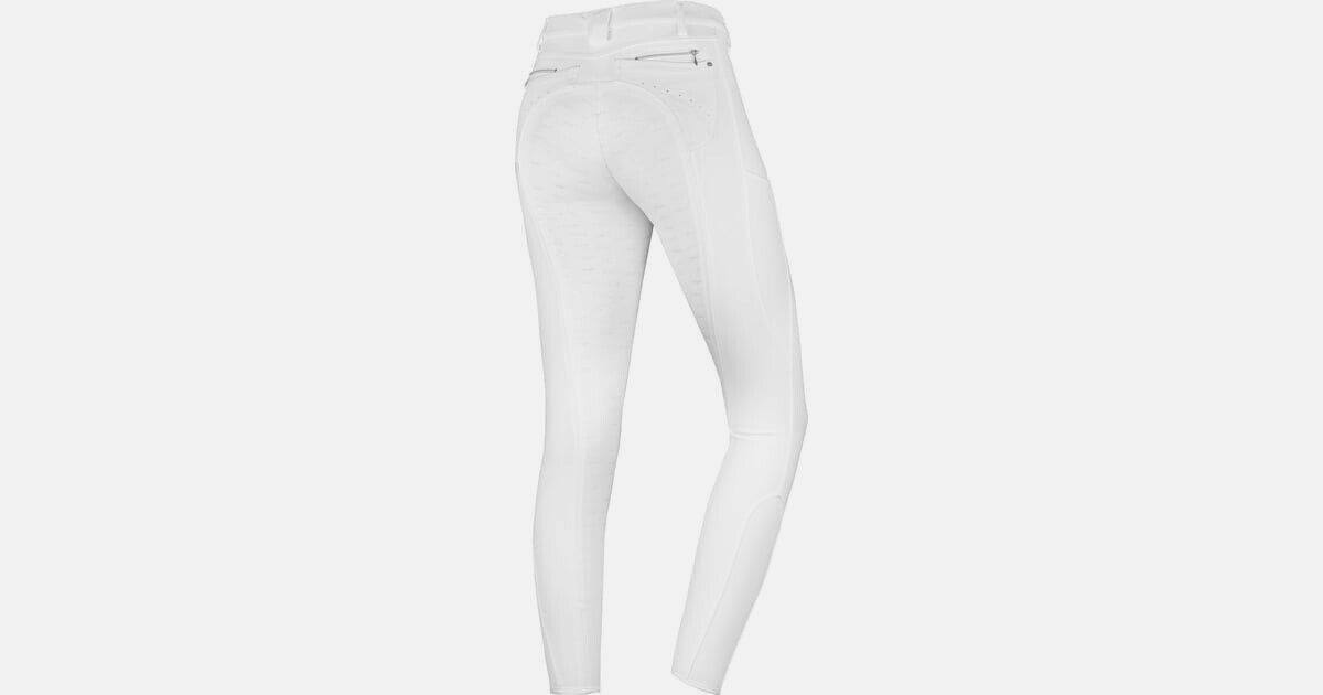 The Victory breeches have a feminine look thanks to the beautiful rhinestone embellishments on the leg, pockets and belt loops. The breeches are very comfortable and feature a silicone print and a breathable, elastic but dimensionally stable material that provides a feel-good factor.