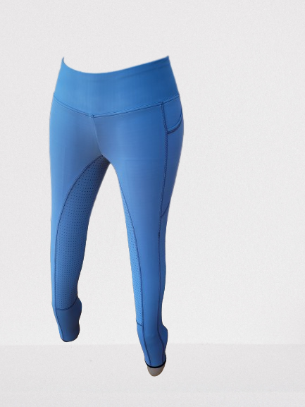 New Silicone Grip Horse Riding Leggings Tights Breeches Phone Pocket SKY BLUE