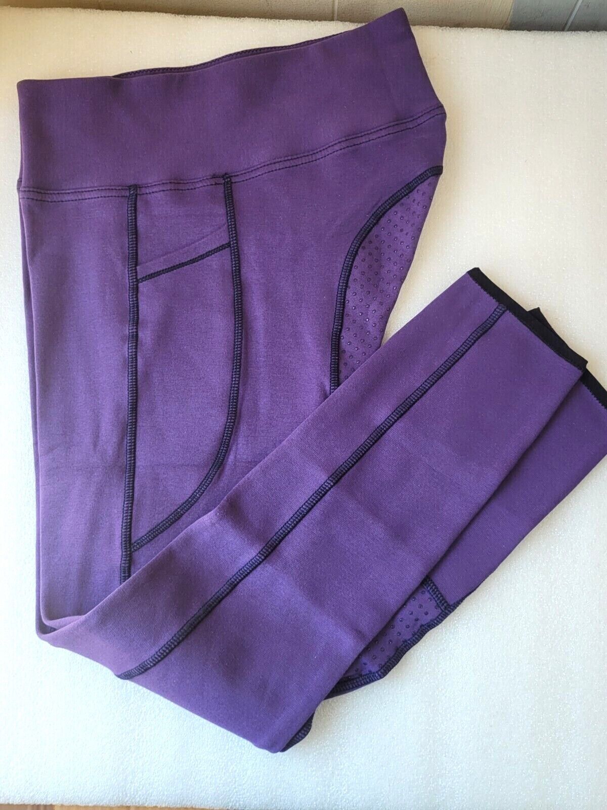 New Silicone Grip Horse Riding Leggings Tights + Phone Pocket PURPLE
