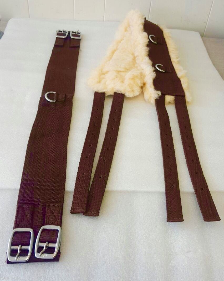 This is high end best quality synthetic pp nylon padded lunge roller with D rings and a girth that is adjustable on both sides or totally removable. Best quality synthetic cardura is used in this body roller with padding on the back for extra comfort .